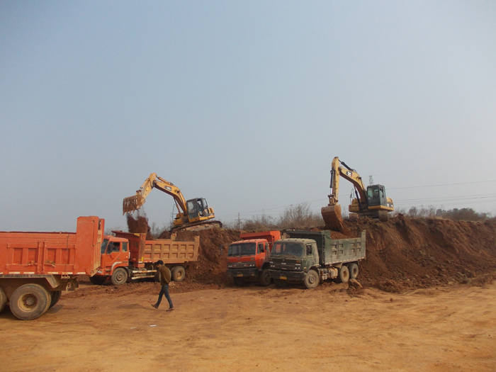 近日,公司承接的常福工業(yè)園場平項目上9臺大挖機(jī)一字排開,四臺推土機(jī)來回穿梭,60臺轉(zhuǎn)運車輛川流不息,施工場面異?;鸨瑸閬砟晔┕ら_了一個好局面。