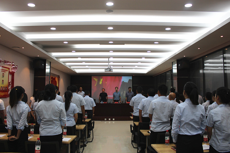 會上,全體起立,唱國歌?!捌饋恚∑饋?!起來!我們?nèi)f眾一心,冒著敵人的炮火,前進(jìn)!冒著敵人的炮火,前進(jìn)!”,慷慨激昂的歌聲充斥在黨員活動中心,這一刻永遠(yuǎn)定格在我們的腦海里。