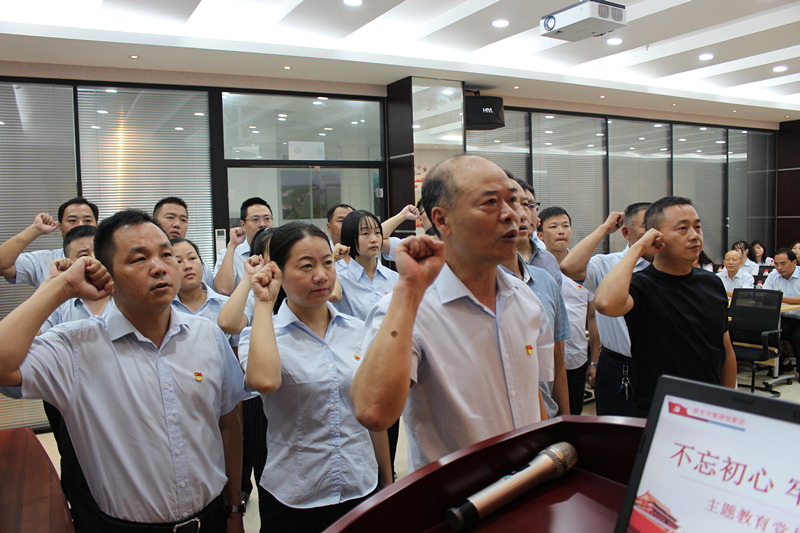 全體黨員重溫入黨誓詞。簡單的80個字,12個標(biāo)點符號,卻組成了這個世界上最令人震撼的話語,每一句都表達(dá)著大家對黨和人民的深情。