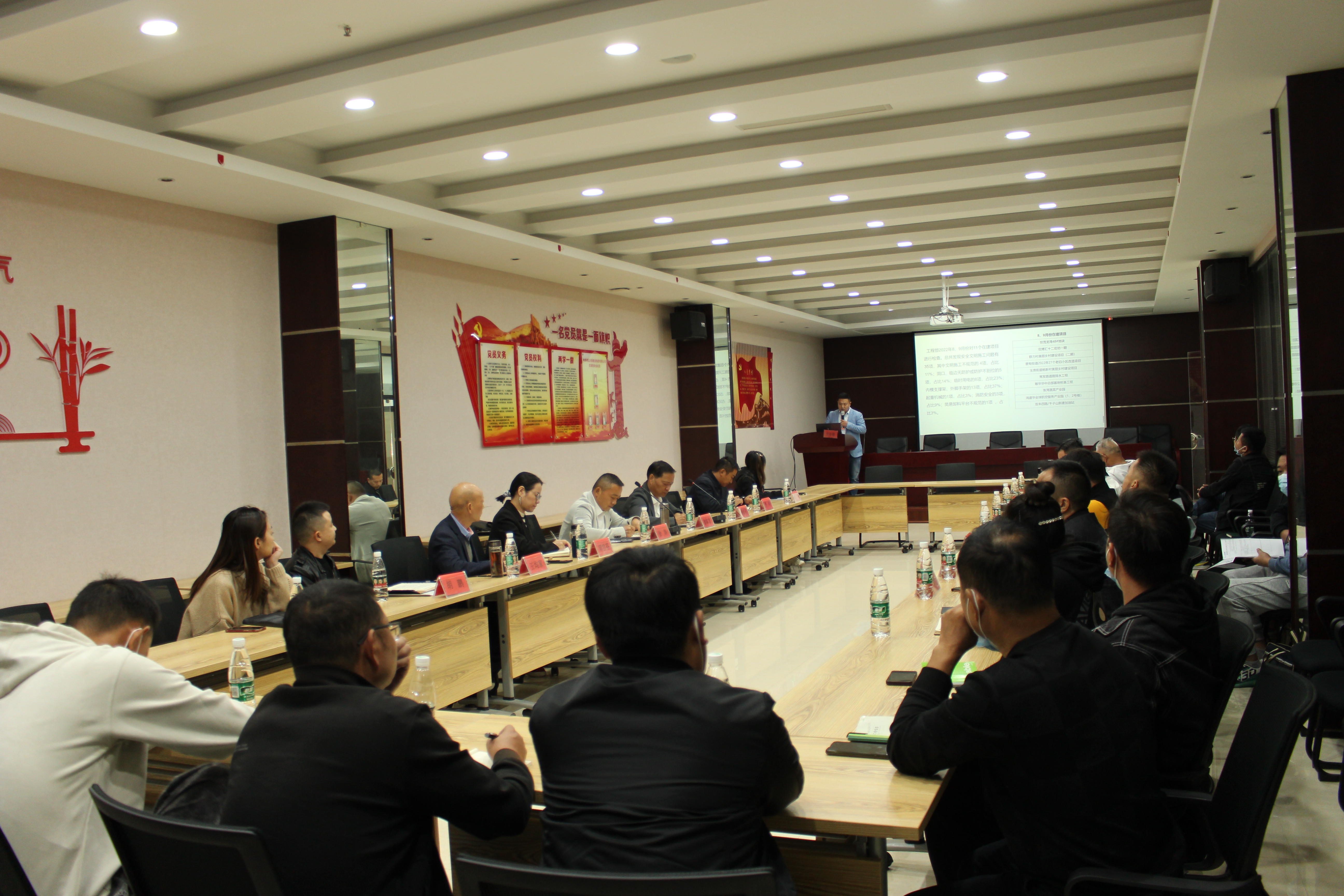 會議現(xiàn)場,工程部對8、9月項目安全、質(zhì)量檢查情況進行了詳細通報。隨后,蔡甸街道27個老舊小區(qū)改造、鴻盛華產(chǎn)業(yè)園、世茂48#地塊、玉賢楊新村美麗鄉(xiāng)村、常發(fā)路道路排水等項目先后對項目當前存在的問題進行匯報,公司領(lǐng)導及相關(guān)職能部門針對項目匯報情況逐一回應(yīng)解答。