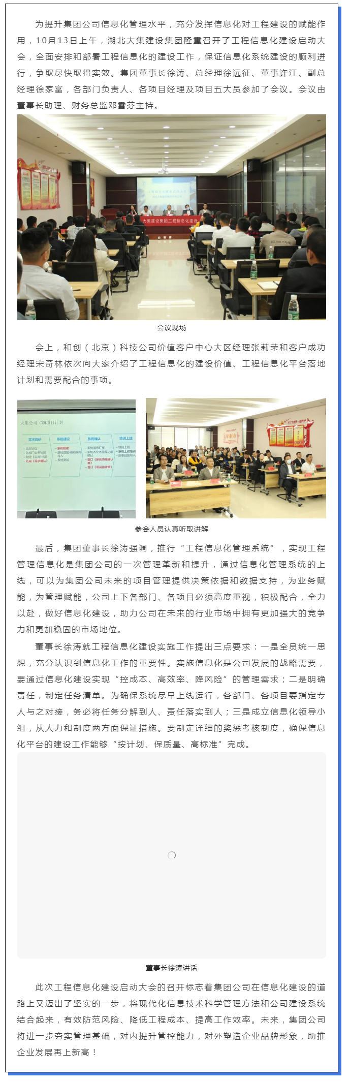 開啟信息化建設(shè) 實(shí)現(xiàn)精細(xì)化管理|湖北大集建設(shè)集團(tuán)工程信息化建設(shè)啟動(dòng)大會(huì)順利召開