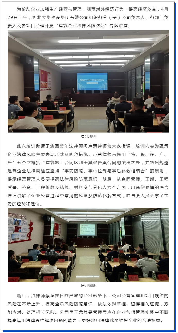 【培訓(xùn)學(xué)習(xí)】集團(tuán)公司舉辦“建筑企業(yè)法律風(fēng)險防范”知識培訓(xùn)