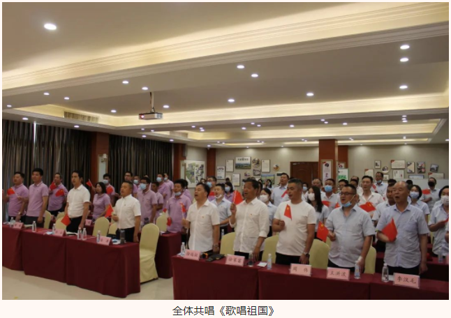 “五星紅旗迎風(fēng)飄揚(yáng),勝利歌聲多么響亮;歌唱我們親愛的祖國,從今走向繁榮富強(qiáng)……”會(huì)議最后,全體起立,共唱《歌唱祖國》,用嘹亮的歌聲表達(dá)了對(duì)黨和祖國的無限熱愛和深深祝福。