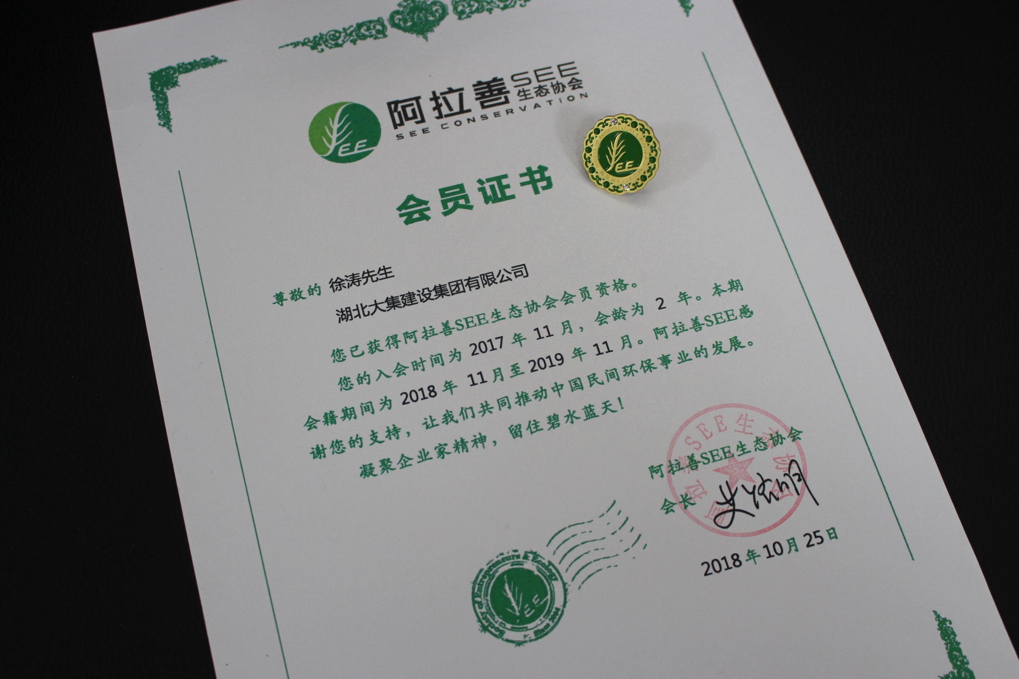 2017年11月,集團董事長徐濤攜湖北大集建設集團正式加入中國最具影響力的環(huán)境保護公益組織——阿拉善SEE生態(tài)協(xié)會,正式成為阿拉善SEE會員。到如今,集團加入阿拉善SEE生態(tài)協(xié)會已經(jīng)第二個年頭了。